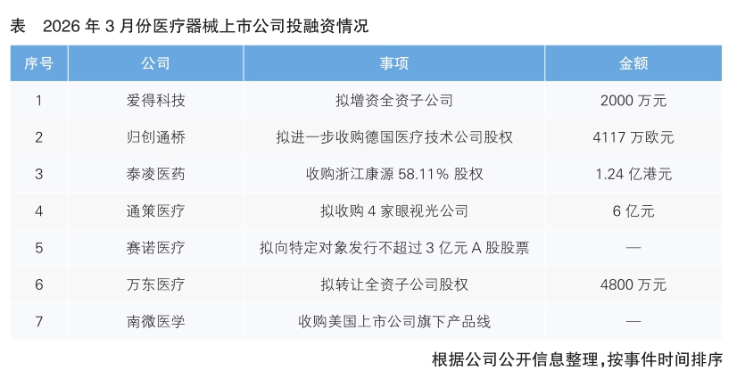 收購優(yōu)質(zhì)資產(chǎn) 補齊發(fā)展短板——3月份醫(yī)療器械上市公司資本流向分析