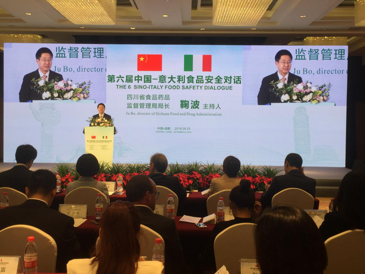 9月25日,第六屆中國—意大利食品安全對話在成都舉行。來自中國、意大利兩國政府領導、企業嘉賓、專家學者共聚蓉城,圍繞“食品領域風險評估和防控”主題,共話食品安全,共謀發展大計。意大利駐華大使謝國誼、國家市場監督管理總局副局長孫梅君、四川省人民政府副秘書長王海峰等出席活動并致辭,四川省食品藥品監督管理局黨組書記、局長鞠波主持活動。