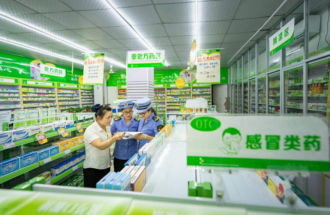 圖為執(zhí)法人員在一家藥店檢查。趙海軍 孫玉安 攝影報道
