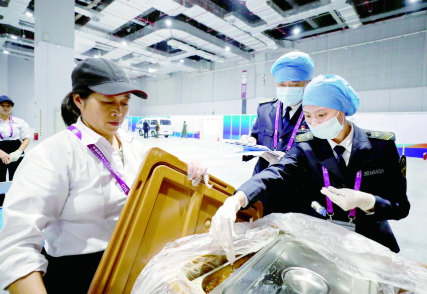 上圖為該局執法人員在進博會現場檢測食品。陳炅瑋 攝