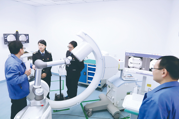 9∶10,高飛、謝立偉和東升鎮(zhèn)食藥監(jiān)所的馬佳怡等人匯合,來到第一家企業(yè)——北京天智航醫(yī)療科技股份有限公司檢查。這是生產(chǎn)我國自主研發(fā)的世界首臺創(chuàng)傷及脊柱骨科手術機器人“天璣”的企業(yè)。