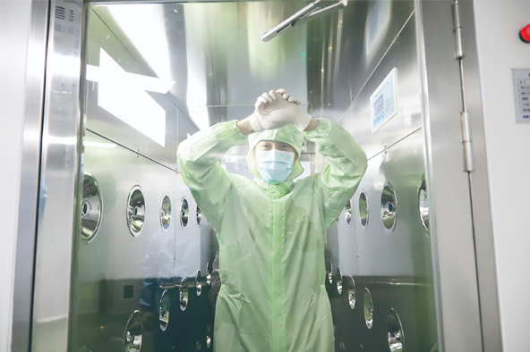 在北京全式金生物技術有限公司,監(jiān)管人員按照潔凈控制標準,“全副武裝”接受風淋。