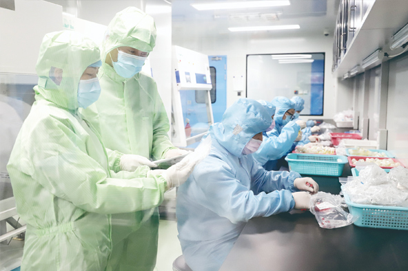 14∶00,監(jiān)管人員來到北京全式金生物技術有限公司檢查診斷試劑。進入潔凈區(qū)前,他們嚴格按照程序接受健康檢查并登記,此外,更衣、換鞋、洗手、風淋一樣都不少。有時監(jiān)管人員一天要檢查四五個車間,脫脫穿穿十多次,但這些程序絲毫不打折扣。“做好潔凈防護直接關乎產(chǎn)品質(zhì)量安全,‘正人先正己’,我們要給企業(yè)做表率。”馬佳怡說。