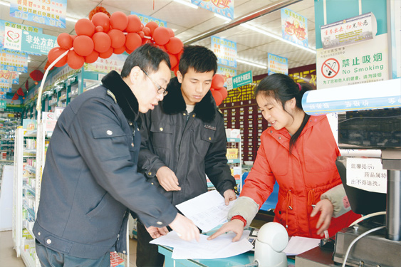 圖為執法人員在灘歌鎮一家藥店檢查。張瑜 攝