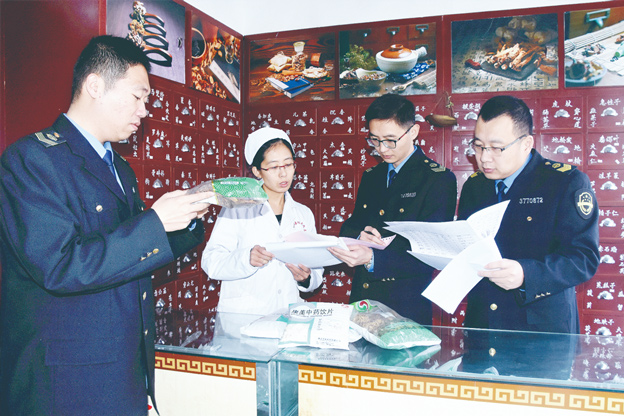 圖為執法人員在一家藥店檢查中藥飲片。李慧 攝
