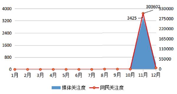 從整體關(guān)注度來看,如圖1所示,事件曝出當天,網(wǎng)民關(guān)注度就達到頂峰,新聞關(guān)注度呈現(xiàn)升高之勢。同時,從輿情發(fā)展走勢看,輿情在媒體輿論場和民間輿論場都很快消退。