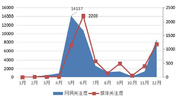 以2018年1月1日~12月31日為監(jiān)測時間段,相關(guān)信息量呈現(xiàn)“山峰式”的發(fā)展特征,如圖1所示,其中以微博平臺信息為主。