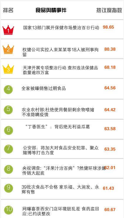 食品輿情排行榜|國家13部門開展“保健”市場整治百日行動