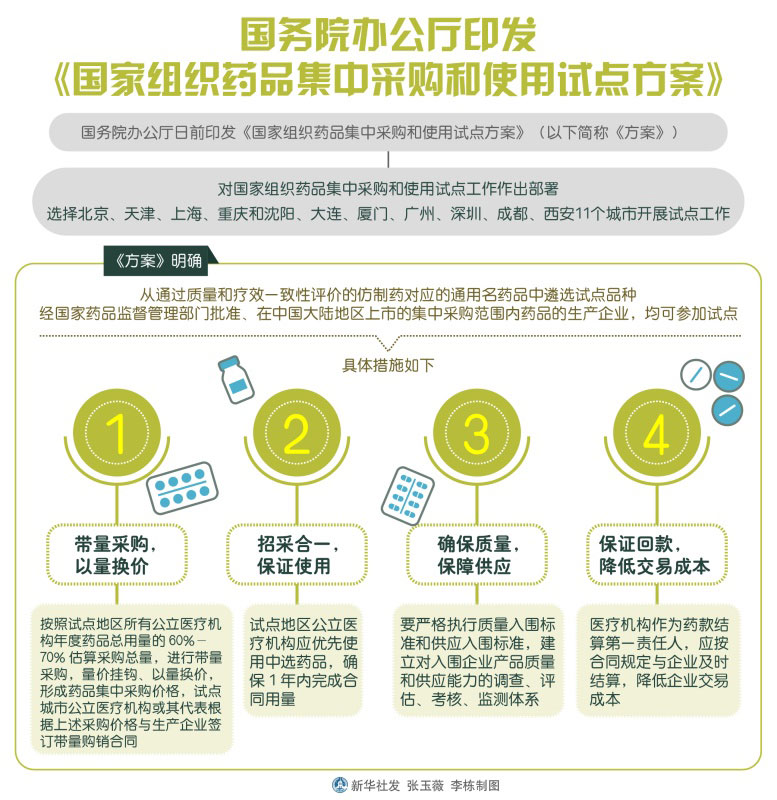 國務院辦公廳印發《國家組織藥品集中采購和使用試點方案》