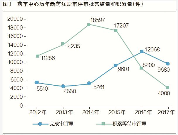 近年來,我國藥品審評審批速度不斷提高,新藥審批等待時間大幅縮減。從藥品審評中心(CDE)公布的歷年藥品審評報告可以看出,藥品注冊申請審評審批速度明顯加快,從2015年之前的年均5000件審評完結量大幅提升到2017年的1萬件左右;積壓等待審評量從2015年高峰期的2.2萬件下降到2017年的約4000件(見圖1),目前注冊積壓已逐步消除,90%的藥品注冊申請實現了法定時限審評。