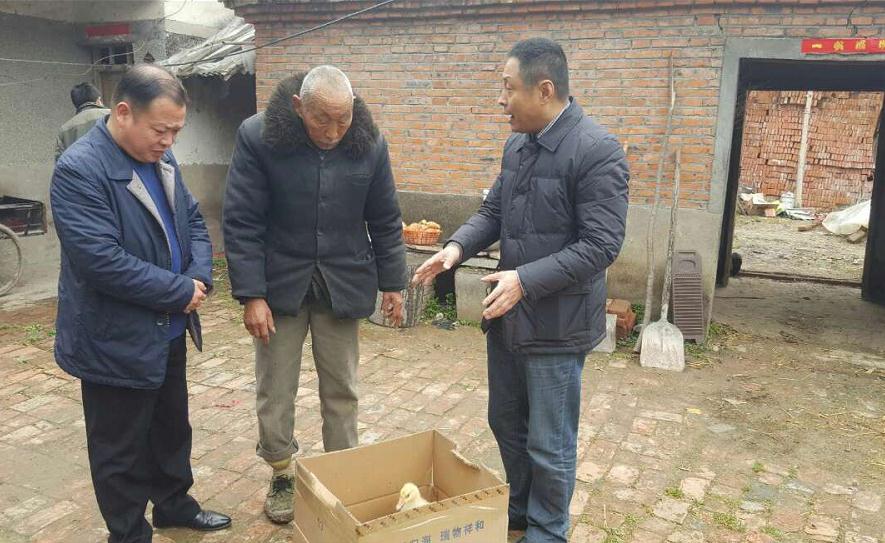 陳健(右一)為幫扶的農戶送去鵝苗。