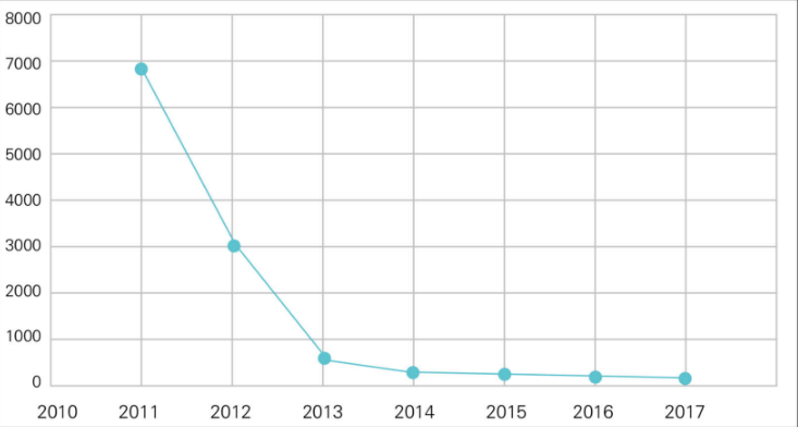 在美國,原研藥專利到期之前,FDA會嘗試性地批準幾個甚至十幾個仿制藥,這些仿制藥在原研藥專利到期當天就可以銷售,而且享受180天的市場獨占期。一般情況下,獨家首仿藥的定價可高達原研藥的70%甚至更高,在180天市場獨占期內,部分仿制藥甚至可以瓜分掉原研藥30%~70%的市場。但180天一過,大量仿制藥上市,價格戰隨即打響,有的仿制藥價格甚至降到原研藥價格的10%以下。價格太低,生產成本較高的企業就只能選擇放棄。對于原研藥而言,或是跟仿制藥一起降價,或是不再放量,甚至停產停售。氯吡格雷就是一個典型例子。根據IQVIA數據,氯吡格雷2017年在美國的銷售額只有1.3億美元(見圖2)。