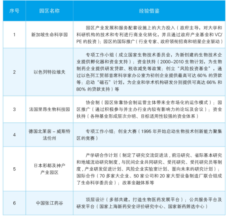政府驅動類主要包括新加坡啟奧生命科學園、以色列特拉維夫、法國里昂生物科技園、德國北萊茵-威斯特法倫州、日本彩都及神戶園區、中國張江藥谷等(見表)。