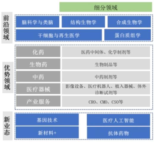 園區重點發展生物藥、植入材料、新型疫苗等重點細分領域以及基因工程、蛋白質等關鍵技術領域,集聚了包括雙鷺藥業、科興生物等龍頭企業。