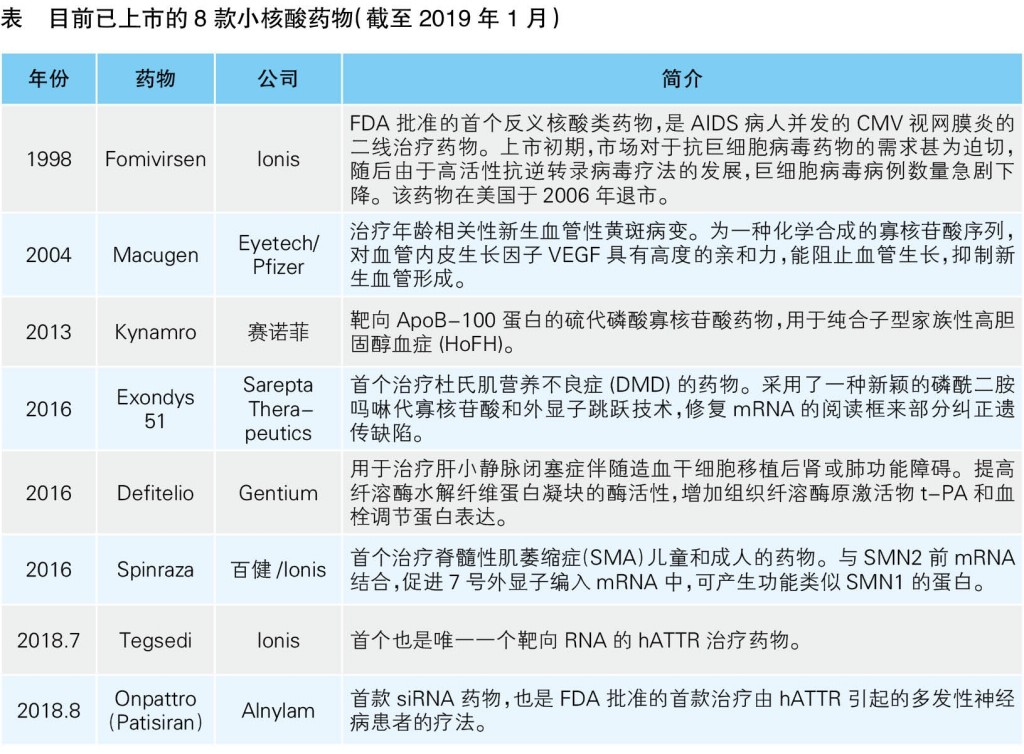 2017年11月,美國FDA認定Alnylam制藥公司針對轉運甲狀腺素蛋白的RNAi療法Patisiran為突破性療法;2018年8月,FDA批準Patisiran輸注治療由遺傳性轉甲狀腺素蛋白淀粉樣變性(hATTR)引起的周圍神經疾病患者。至此,Patisiran成為FDA批準的首款小干擾RNA藥物。