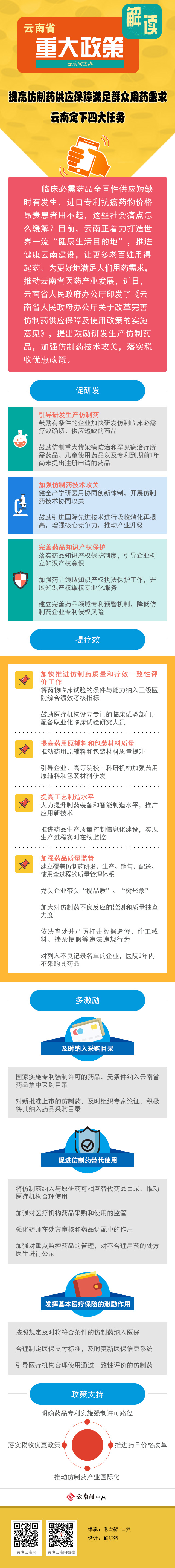 臨床必需藥品全國性供應短缺時有發(fā)生,進口專利抗癌藥物價格昂貴患者用不起,這些社會痛點怎么緩解?目前,云南正著力打造世界一流“健康生活目的地”,推進健康云南建設,讓更多老百姓用得起藥。為更好地滿足人們用藥需求,推動云南省醫(yī)藥產(chǎn)業(yè)發(fā)展,近日,云南省人民政府辦公廳印發(fā)了《云南省人民政府辦公廳關(guān)于改革完善仿制藥供應保障及使用政策的實施意見》,提出鼓勵研發(fā)生產(chǎn)仿制藥品,加強仿制藥技術(shù)攻關(guān),落實稅收優(yōu)惠政策。