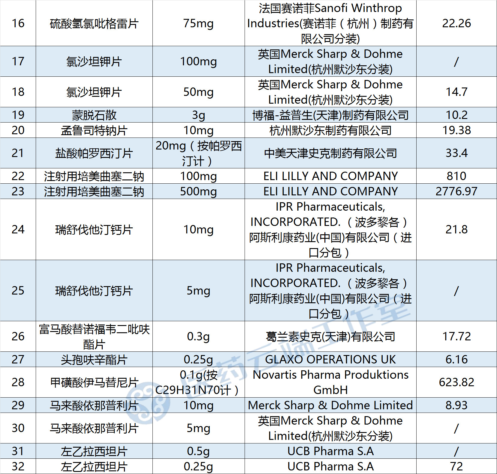 我們關注到,在4+7集采中報價最高而落選的23品種、32個品規,出現在談判范圍中,如下表所示: