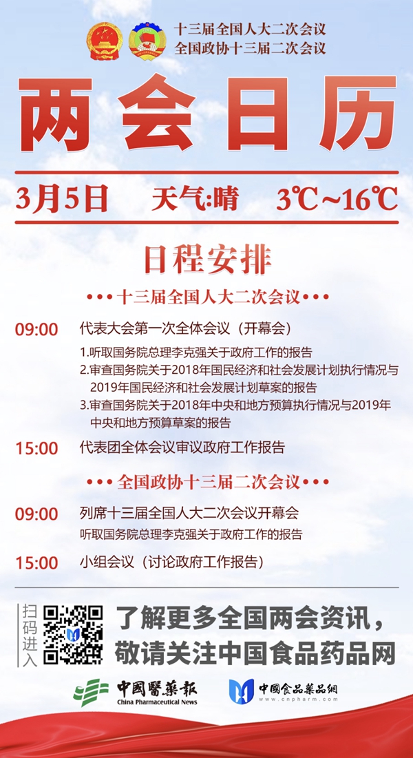 兩會日歷丨3月5日:十三屆全國人大二次會議上午9時開幕