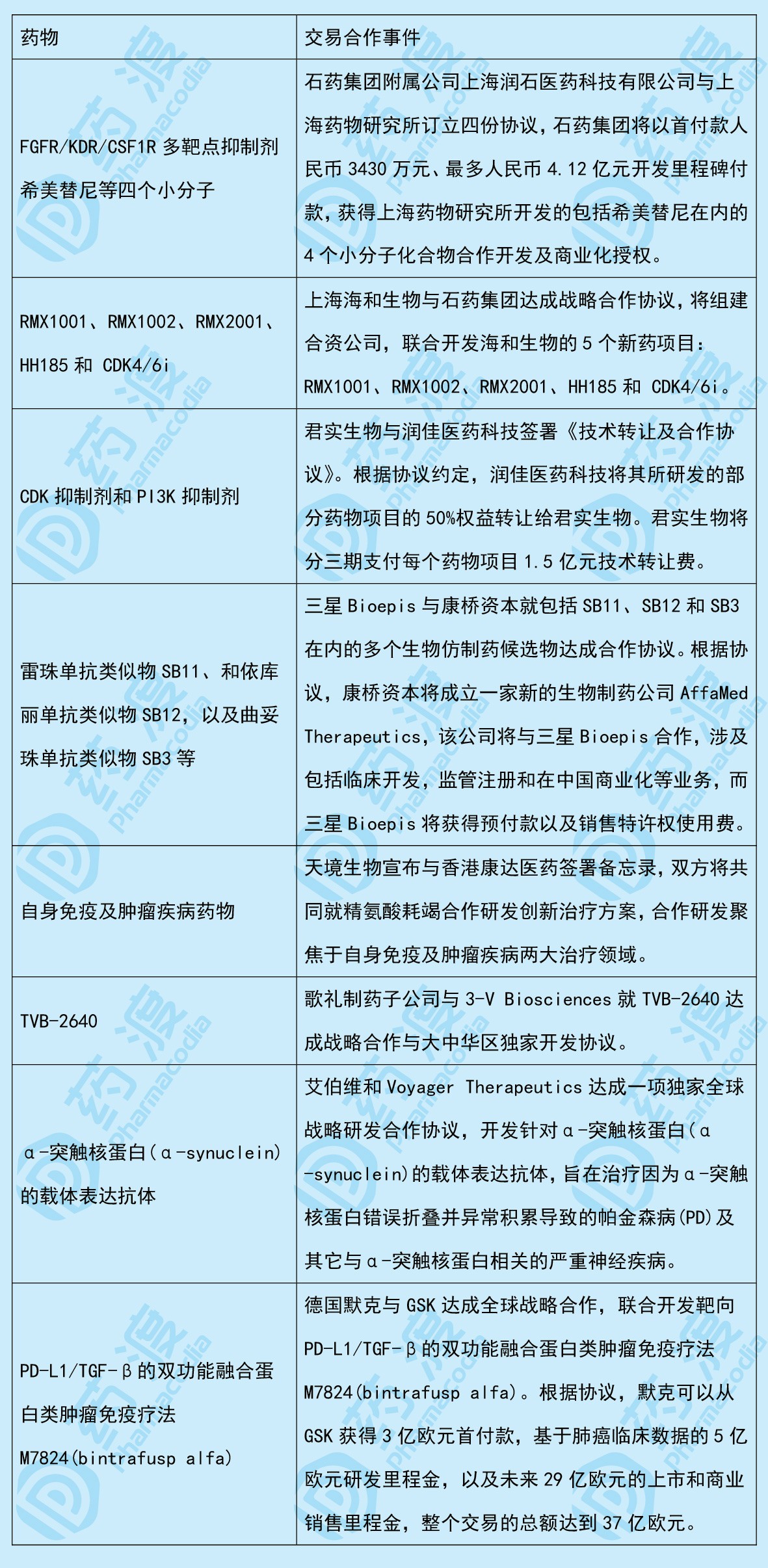 2月藥物有關(guān)交易合作匯總