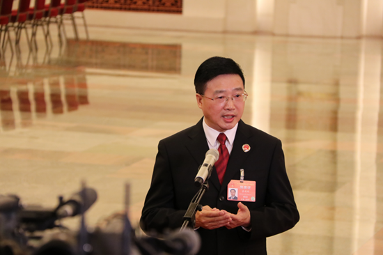 最高人民檢察院副檢察長童建明接受記者采訪。