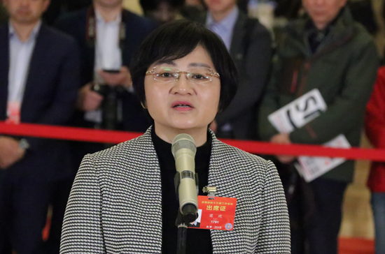 全國政協委員、廣西壯族自治區來賓市副市長梁琰回答記者提問。(中國食品藥品網記者蔣紅瑜 攝)