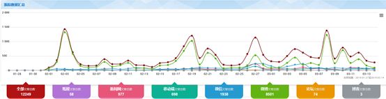 以1月27日~3月14日17時為監測時間段,如上圖所示,輿情走勢呈“波浪式”發展特征,網民關注度遠高于媒體關注度。
