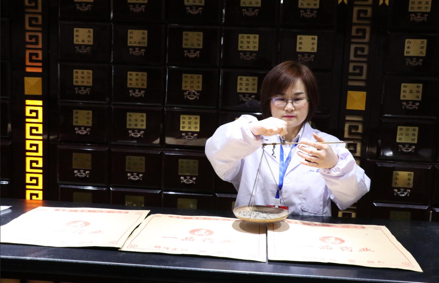 “我們要堅持‘分戥退稱、分堆放置、戥量遞減、逐劑復(fù)戥’標(biāo)準(zhǔn)規(guī)范操作,不能憑感覺、憑經(jīng)驗去抓藥。”記者采訪時,見到陳桂芳正指著墻上張貼的《中藥處方調(diào)配標(biāo)準(zhǔn)化操作流程》,提醒新入職的員工。隨即,陳桂芳走進(jìn)柜臺給大家示范實操,邊操作邊向店員強(qiáng)調(diào)每一個步驟的重點和細(xì)節(jié)。