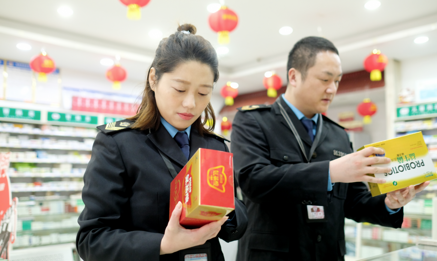 圖為執法人員正在對一家藥店進行檢查。通訊員 廖蘭/攝