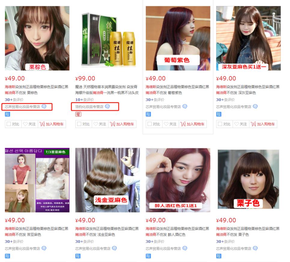 電商平臺的芯聲貿易化妝品專營店、浩鈞化妝品專營店等店鋪還在銷售相關產品。