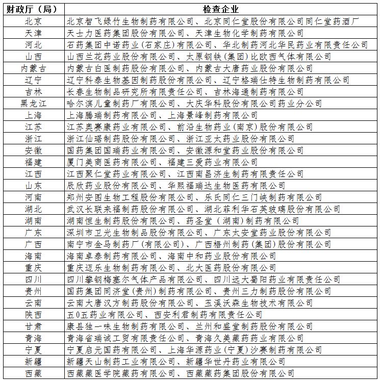 附件2:地方財政廳(局)2019年醫藥企業會計信息質量檢查名單