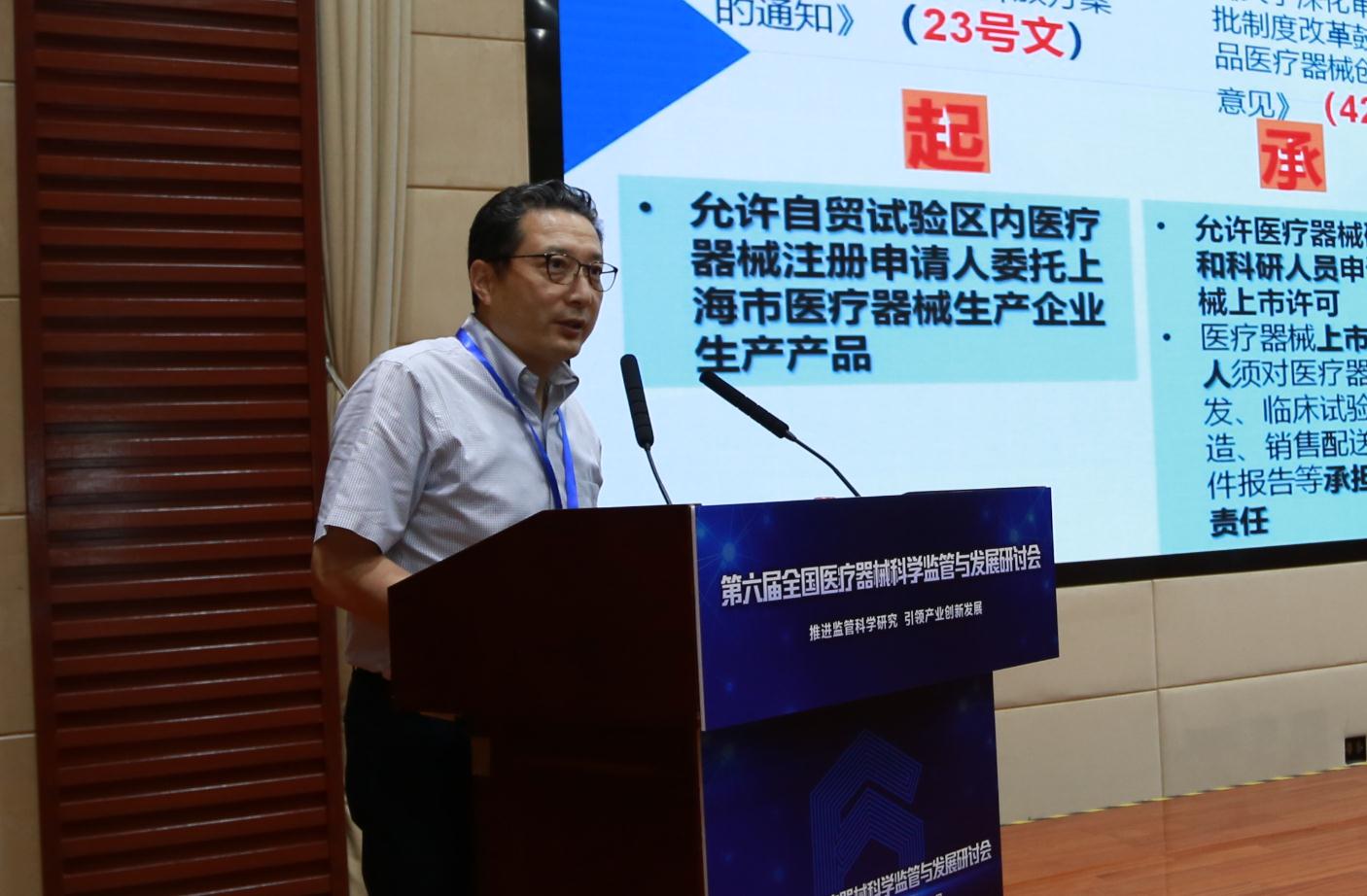 圖為上海市藥監局醫療器械注冊處稽查專員林峰作題為“深化改革促發展探索醫療器械注冊人制度試點”的主題發言。苗晨 攝