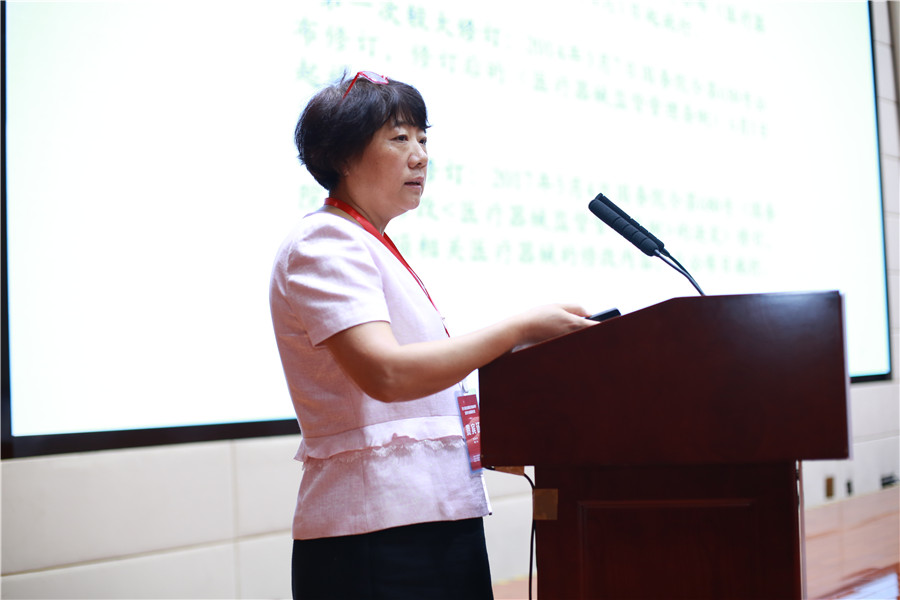 圖為國家藥監局政策法規司副司長吳利雅作題為“加強完善醫療器械法規制度 助力行業健康發展”的主題發言。苗晨 攝