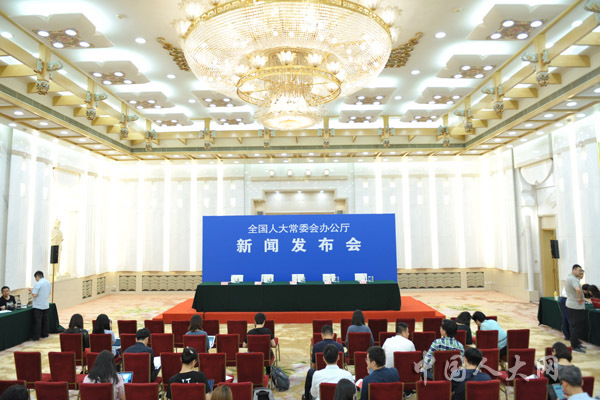 6月29日下午,十三屆全國人大常委會第十一次會議閉幕后,全國人大常委會辦公廳在人民大會堂臺灣廳召開新聞發布會,全國人大常委會法工委、國家衛生健康委、國家藥監局等單位有關負責人出席新聞發布會,共同回答剛剛通過的疫苗管理法的有關問題。圖為新聞發布會即將開始。中國人大網 陶宏林 攝