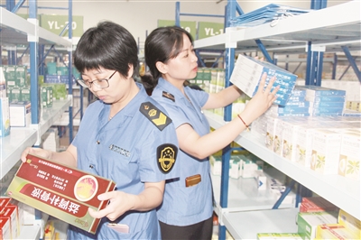 圖為執法人員在查看藥品有效期/攝影報道 李玉蘭 張皓亮