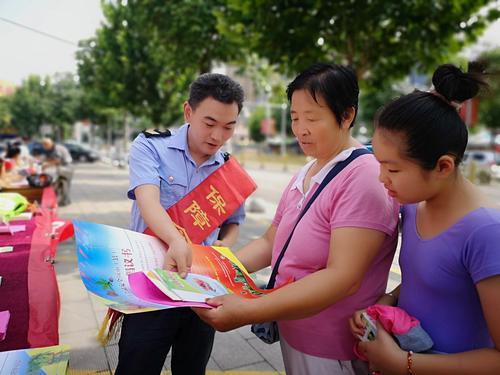 圖為7月17日,晉中市祁縣市場監管局執法人員向社區居民講解食品安全風險,發布夏季食品安全警示。攝/李平林 張瑾