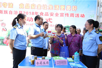 7月17日,廣西壯族自治區(qū)環(huán)江毛南族自治縣召開(kāi)主題為“尚德守法 食品安全讓生活更美好”的2018年食品安全宣傳周活動(dòng)。