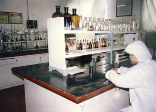20世紀70年代?神威藥業(yè)前身欒城縣紅旗制藥廠質(zhì)檢崗位。