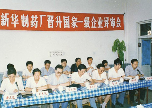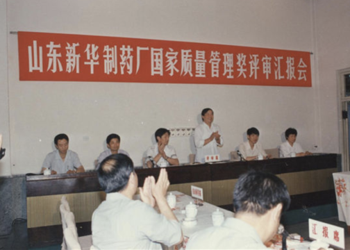 1990年,國家質(zhì)量管理獎評審匯報會現(xiàn)場。1990年9月,新華制藥獲得國家質(zhì)量管理獎,這是全國醫(yī)藥行業(yè)首塊國家質(zhì)量管理獎牌。
