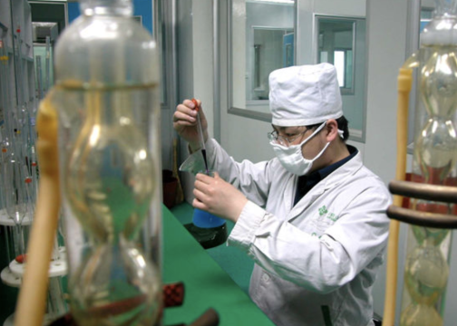 ?20世紀90年代石家莊神威藥業(yè)股份有限公司工作人員正在進行質(zhì)量檢驗。