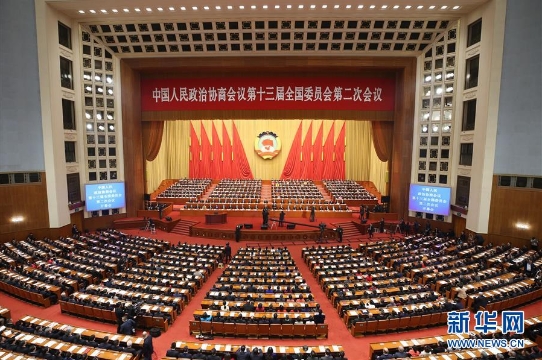 3月3日下午3時,中國人民政治協(xié)商會議第十三屆全國委員會第二次會議在人民大會堂開幕。2133名委員齊聚人民大會堂參政議政、共商國是。大會審議通過了政協(xié)第十三屆全國委員會第二次會議議程,全國政協(xié)主席汪洋代表政協(xié)第十三屆全國委員會常務(wù)委員會作工作報告。