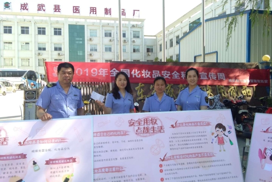 5月23日,山東省菏澤市成武縣市場監管局開展化妝品安全宣傳進企業活動。執法人員到成武醫用制品廠為員工講解化妝品安全知識,播放2019年化妝品安全科普宣傳片,發放宣傳手冊200余本,受收到員工歡迎。