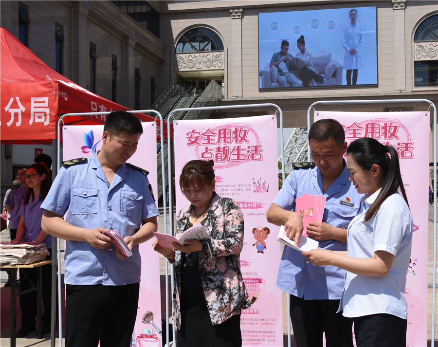 5月20日,遼寧省錦州市市場監督管理局聯合古塔區市場監督管理局在錦州市古塔區站前街道門前開展了以“安全用妝,點靚生活”為主題的大型宣傳活動。