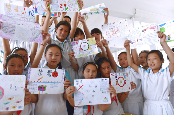 2019年6月24日,江蘇省東??h黃川鎮在開展禁毒宣傳進校園教育宣傳活動。