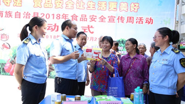 7月17日,廣西壯族自治區環江毛南族自治縣召開主題為“尚德守法 食品安全讓生活更美好”的2018年食品安全宣傳周活動。